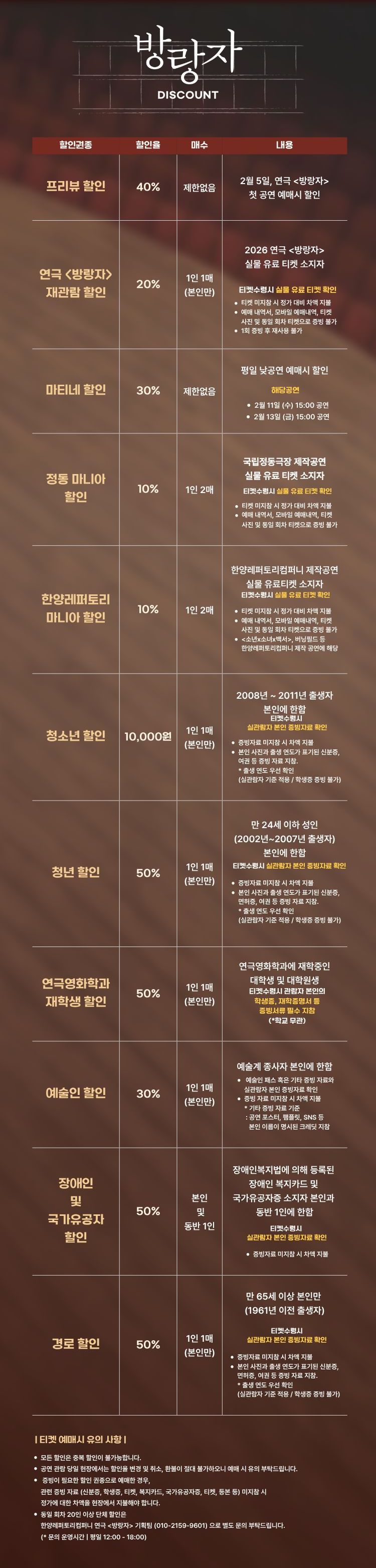 - 관람일 2일전 ~ 취소기한까지: 티켓금액의 30%