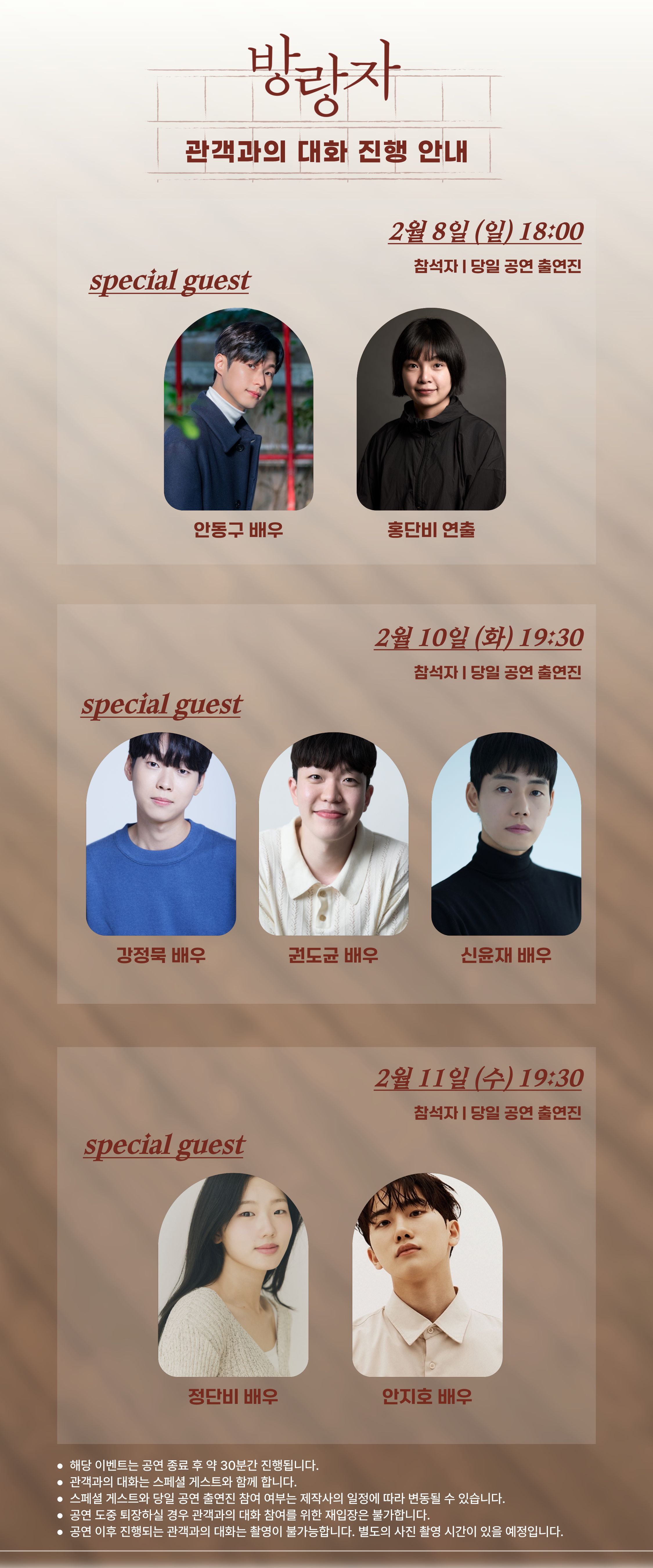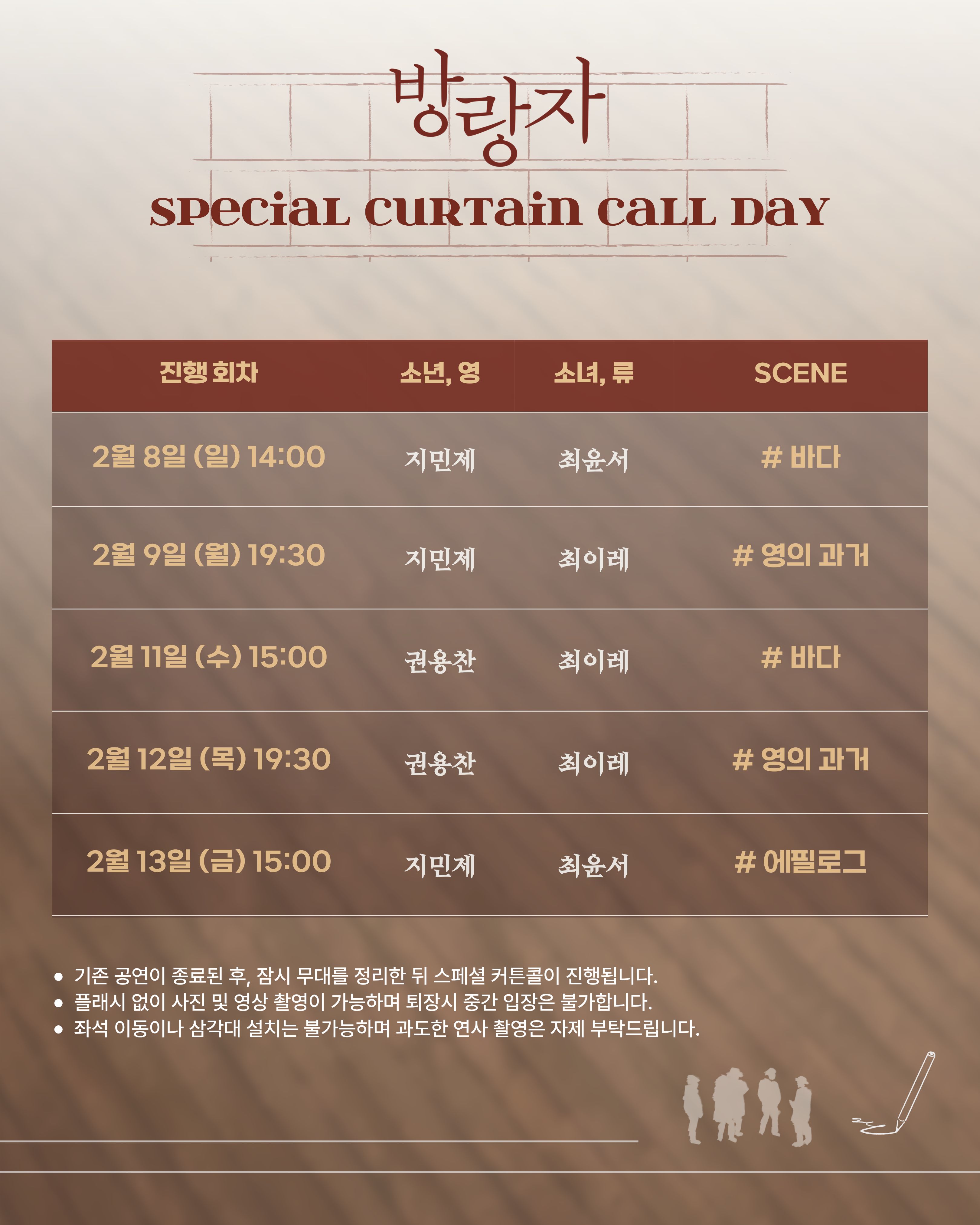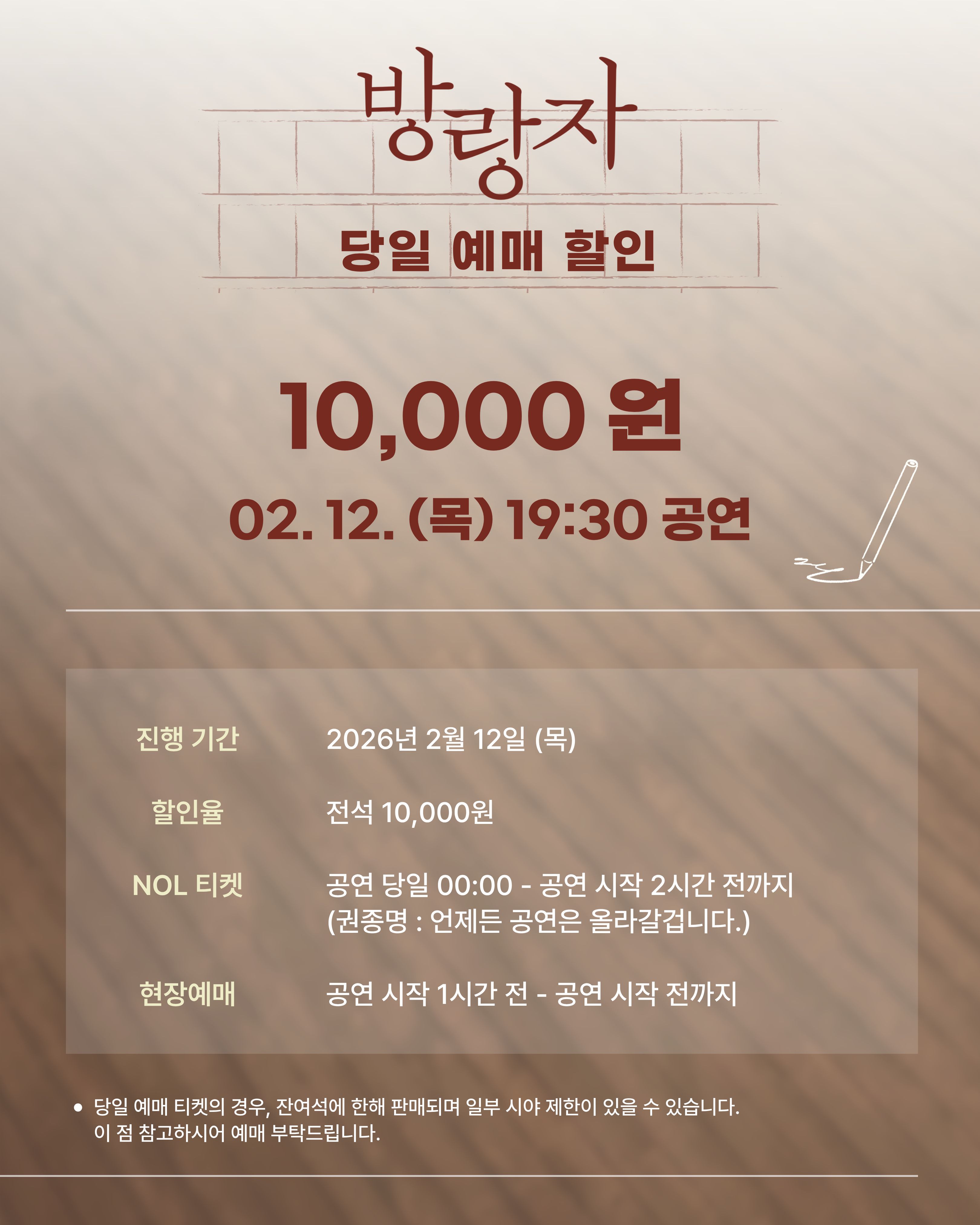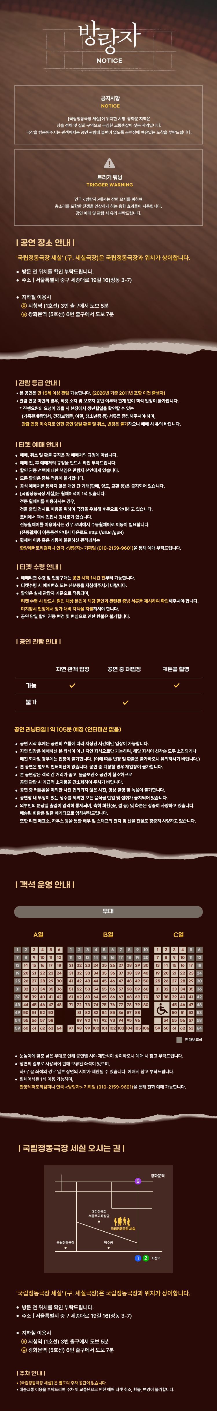 평일 15시, 19시 30분 | 일요일 14시, 18시 (토요일 공연 없음 / 회차별 공연시간 상이)
