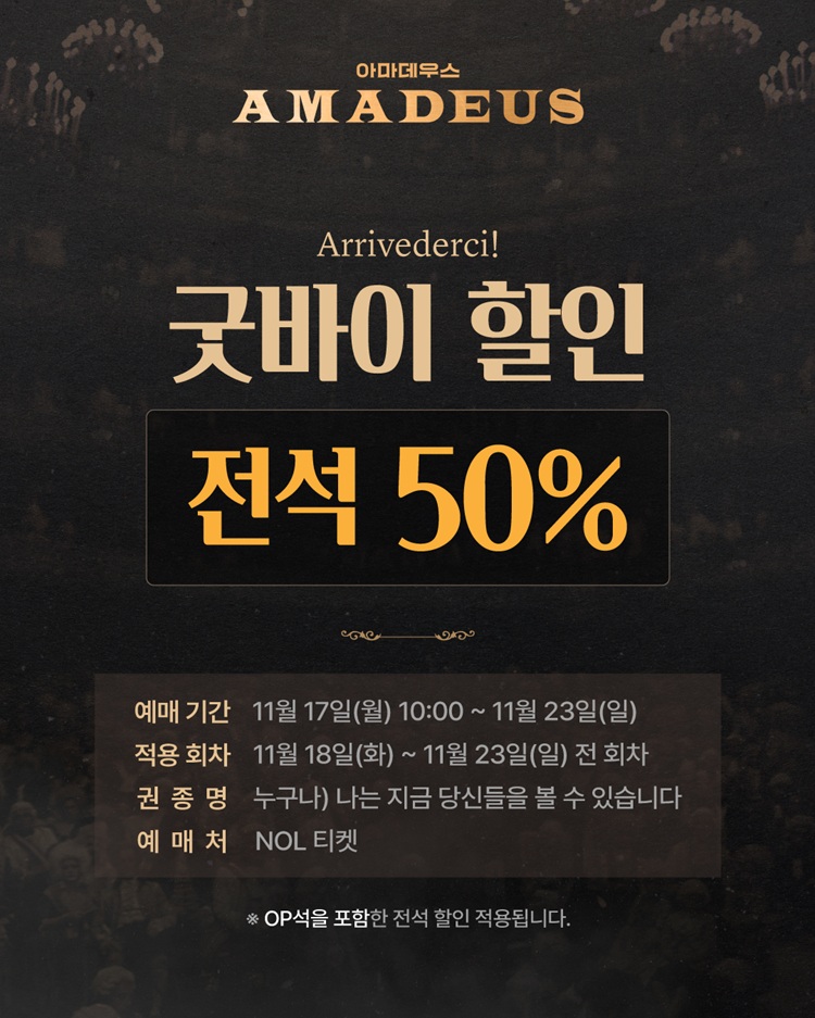 - 관람일 2일전 ~ 취소기한까지: 티켓금액의 30%
