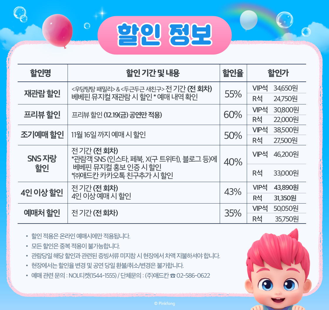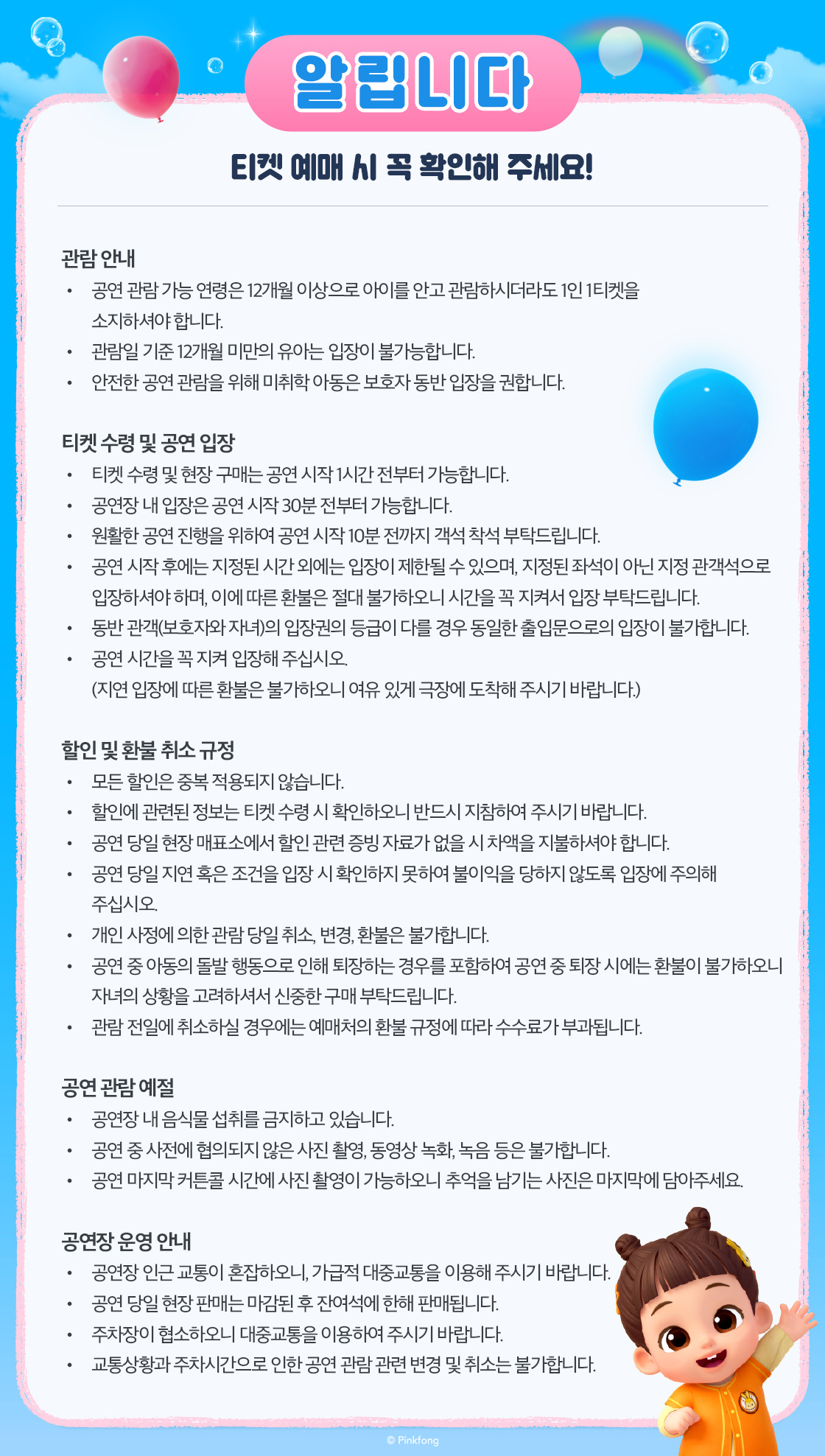 - 예매 후 7일 이내 취소시 티켓 금액 전액이 환불됩니다.(예매 수수료 제외)