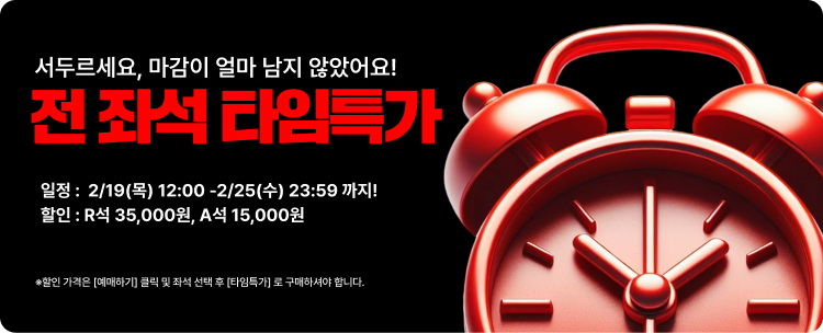 - 특정 기간, 특정 공연일에만 판매하는 가격이 있으니 예매 전 [가격 전체 보기]를 눌러 확인해 주세요.