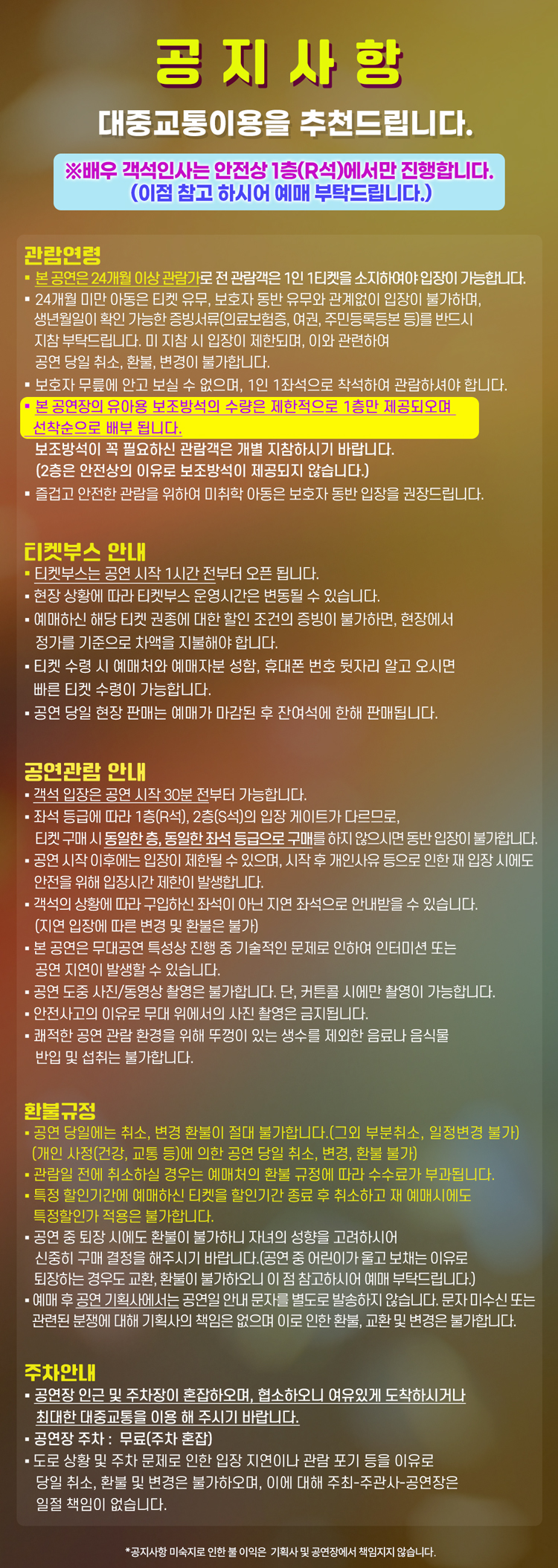 예매가능시간: 전회차 공연관람 전 목요일 오후 5시까지
