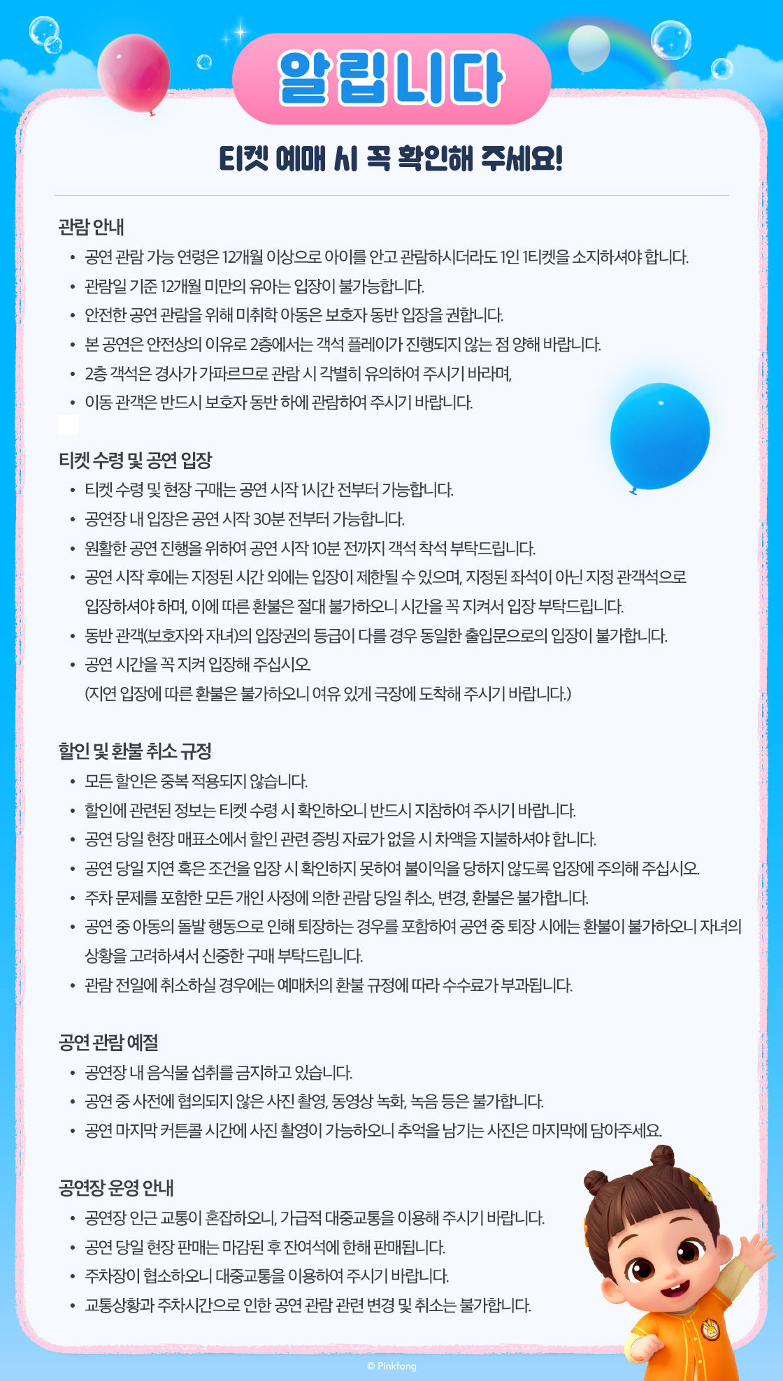 - 예매 후 7일 이내 취소시 티켓 금액 전액이 환불됩니다.(예매 수수료 제외)