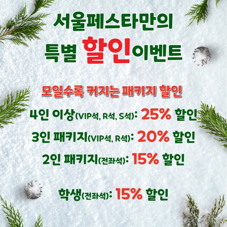 - 특정 기간, 특정 공연일에만 판매하는 가격이 있으니 예매 전 [가격 전체 보기]를 눌러 확인해 주세요.