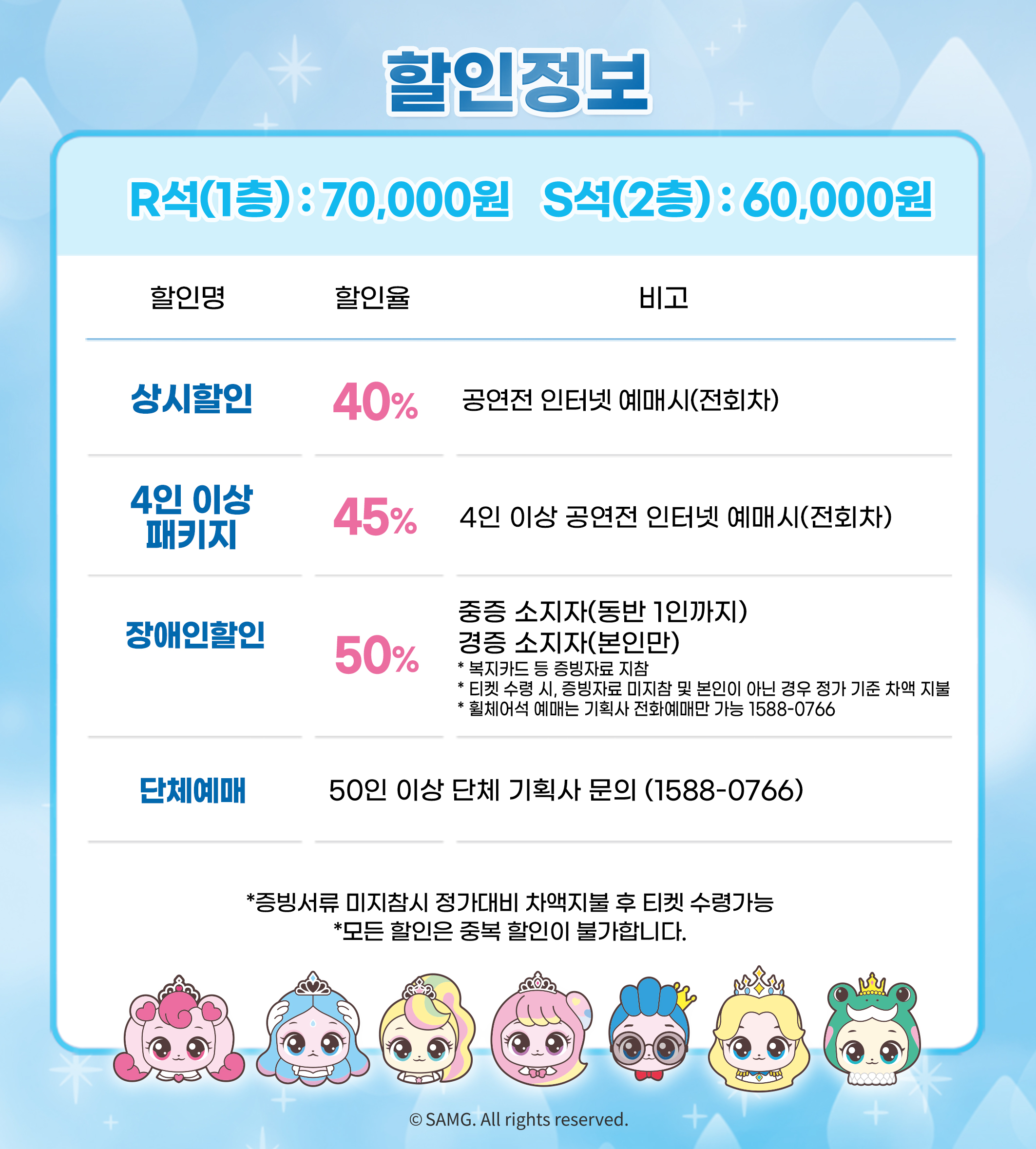 - 예매 후 7일 이내 취소시 티켓 금액 전액이 환불됩니다.(예매 수수료 제외)