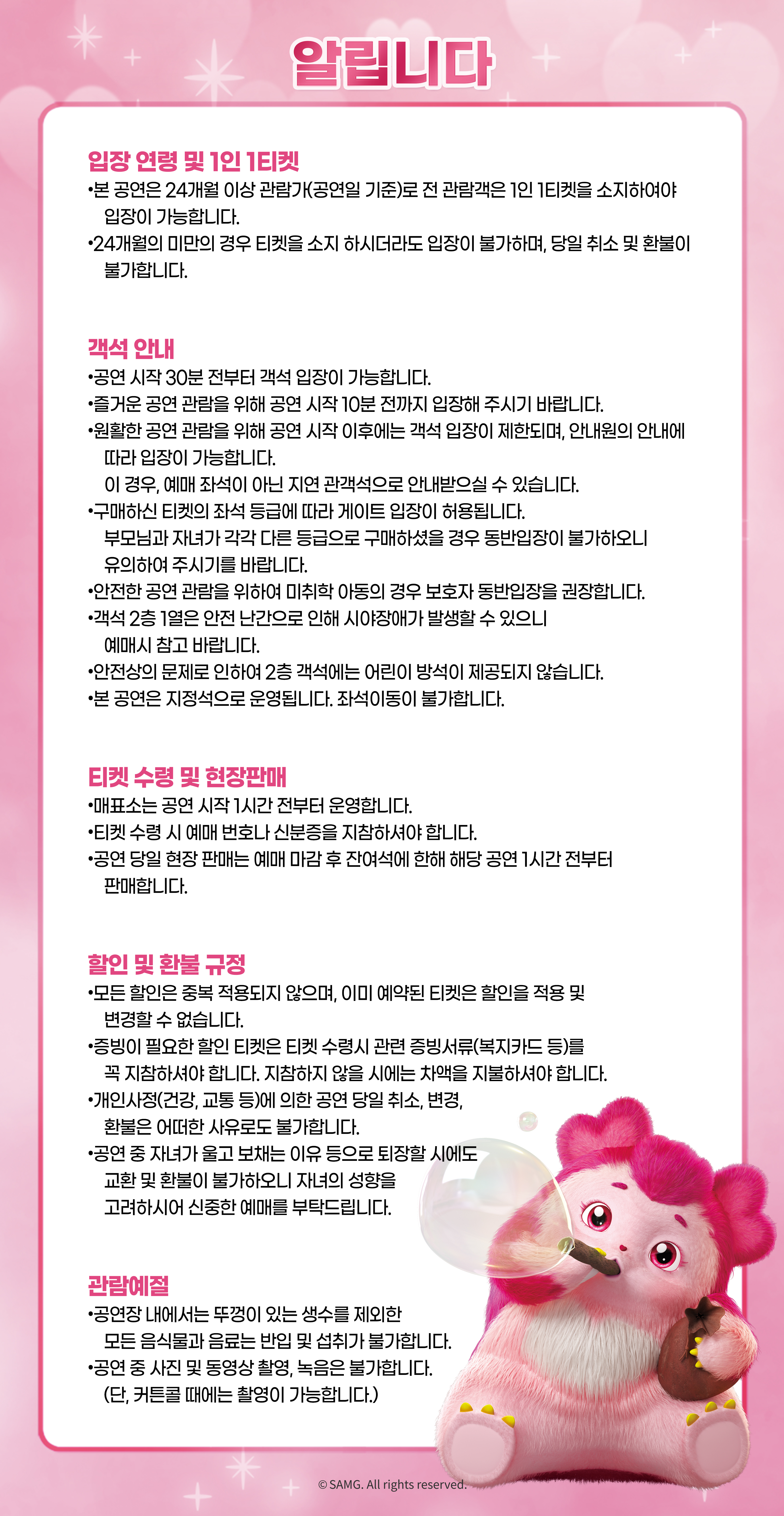 - 관람일 2일전 ~ 취소기한까지: 티켓금액의 30%