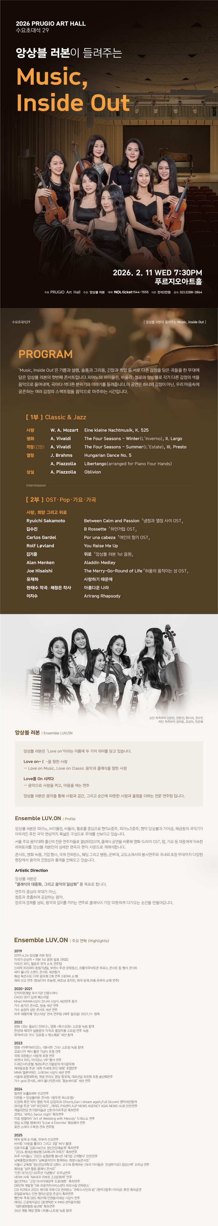 - 100분 (인터미션 15분 포함)