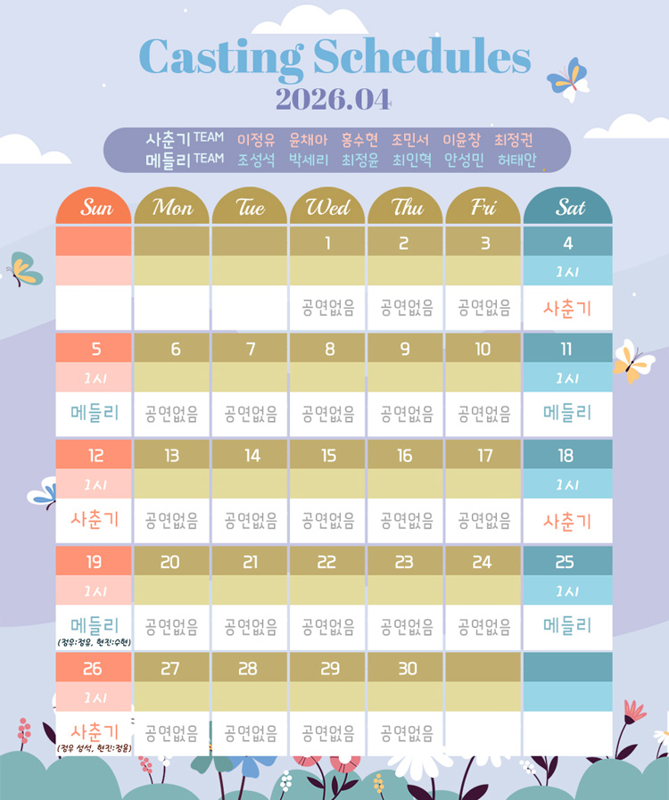 * 5월 1일(금), 5월 5일(화), 5월 25일(월) : 오후 1시
