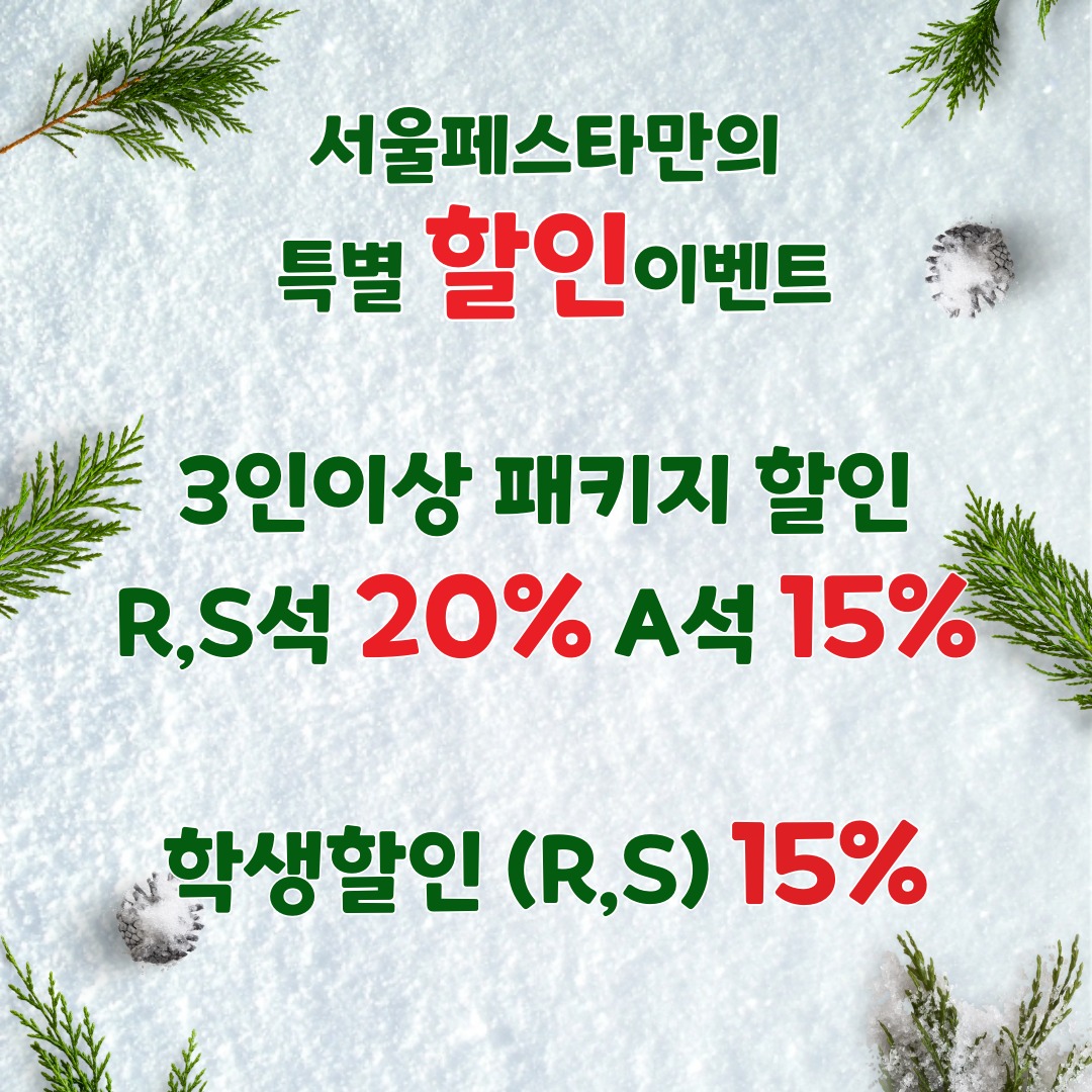 - 특정 기간, 특정 공연일에만 판매하는 가격이 있으니 예매 전 [가격 전체 보기]를 눌러 확인해 주세요.