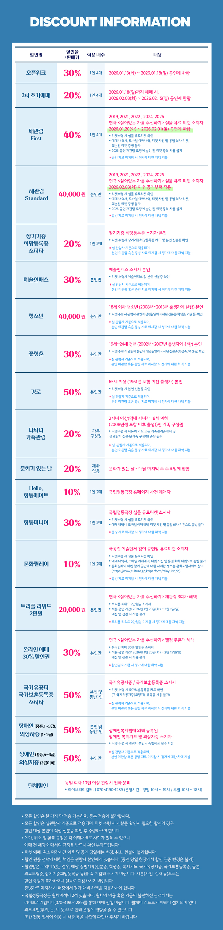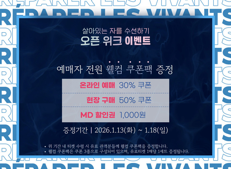 * 2차 티켓오픈 공연기간 : 2026년 2월 3일(화) ~ 2월 15일(일)