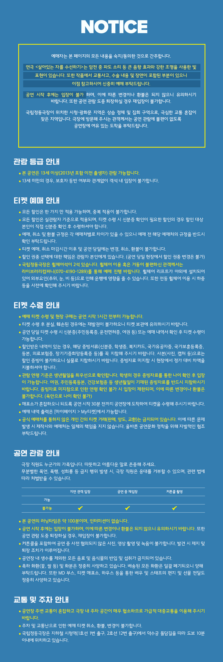 - 특정 기간, 특정 공연일에만 판매하는 가격이 있으니 예매 전 [가격 전체 보기]를 눌러 확인해 주세요.