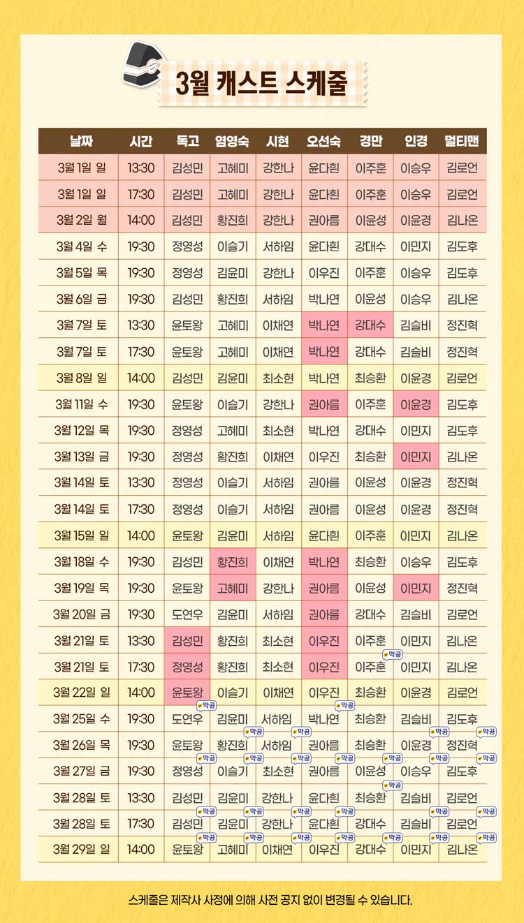 03/09(월) 기준 일부 캐스팅이 변경 되었습니다.