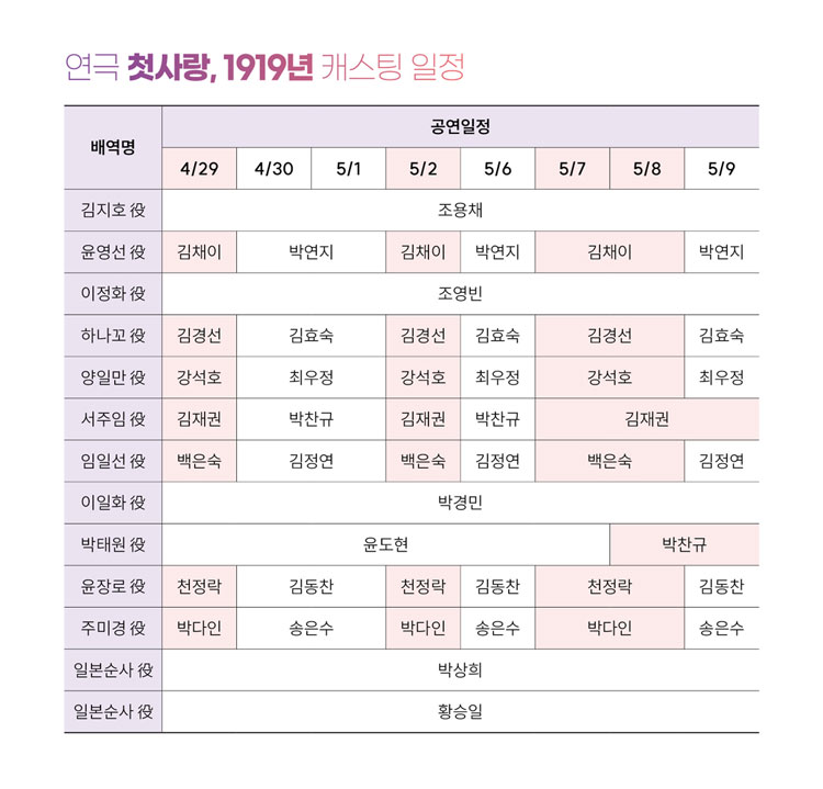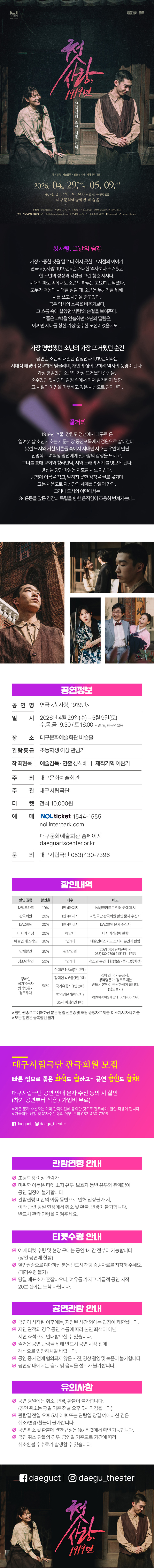 수목금 19:30 / 토 16:00 / 일월화 공연없음