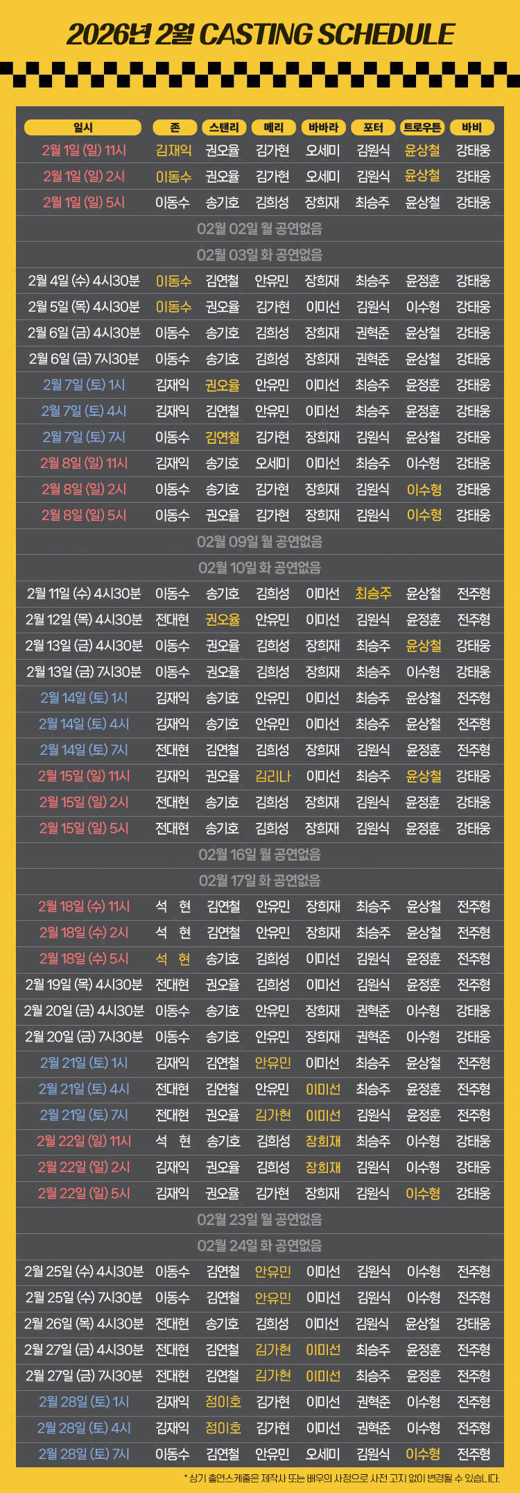 [캐스팅변경 안내]