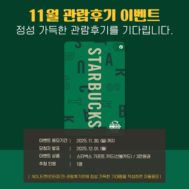 *11/12(수)는 단체관람으로 판매 마감되었습니다.