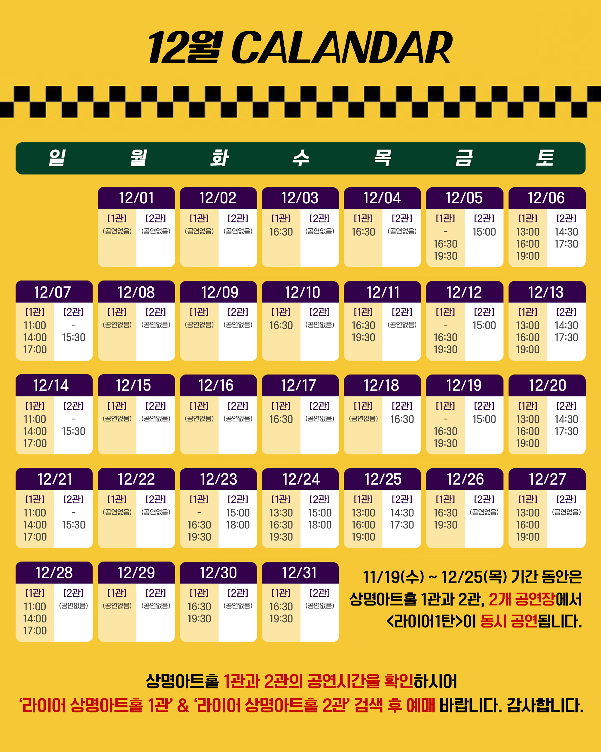 * 12/25(목) 13:00, 16:00, 19:00 (3회 공연)
