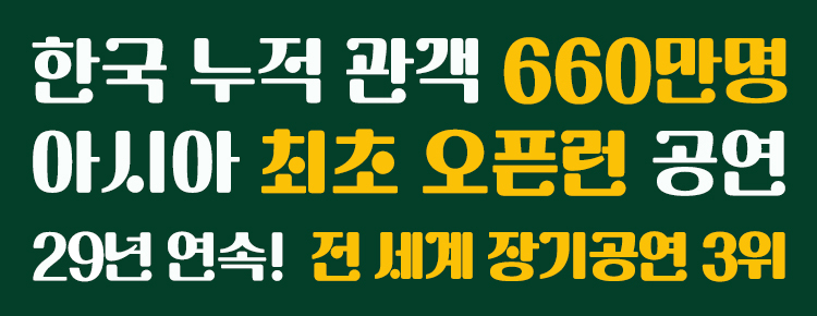 [일] 11:00(조조할인), 14:00, 17:00 / [월, 화 공연없음]