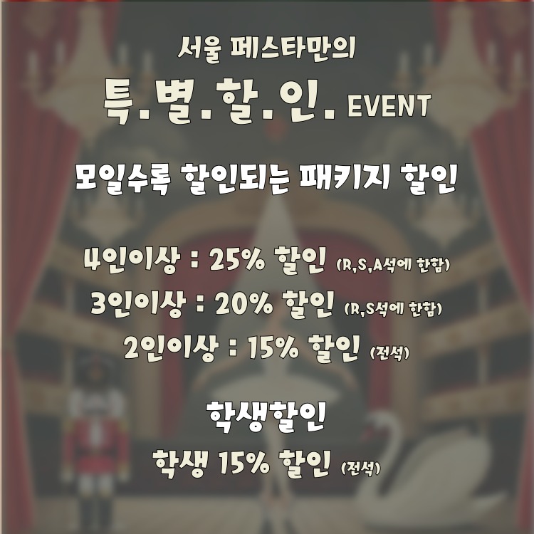 - 관람일 2일전 ~ 취소기한까지: 티켓금액의 30%