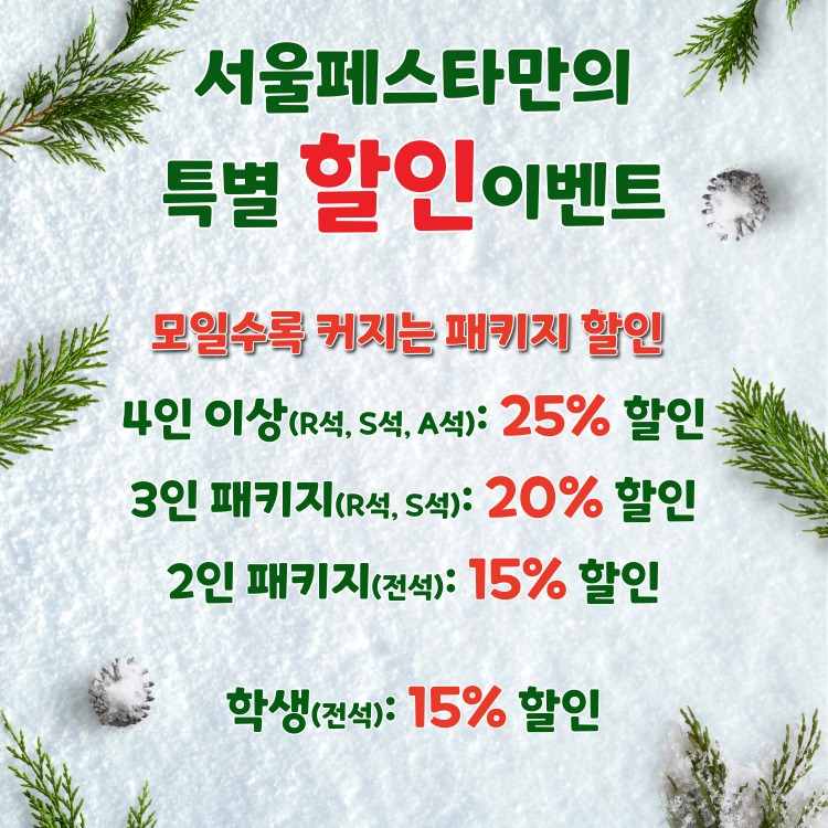 - 특정 기간, 특정 공연일에만 판매하는 가격이 있으니 예매 전 [가격 전체 보기]를 눌러 확인해 주세요.