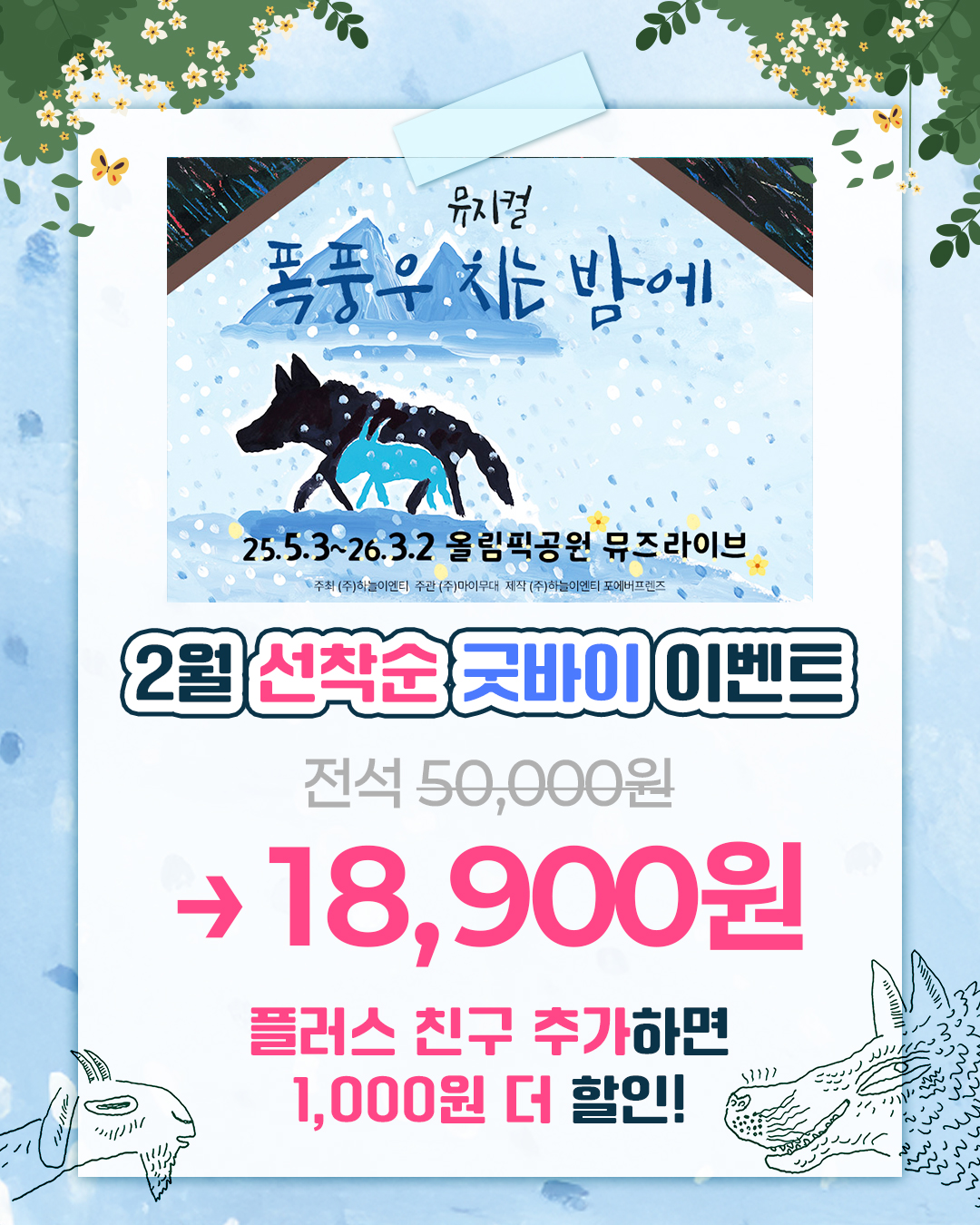 * 2/18(수) 14시 공연, 3/1(일) 11시, 14시 공연, 3/2(일) 14시 공연(막공)