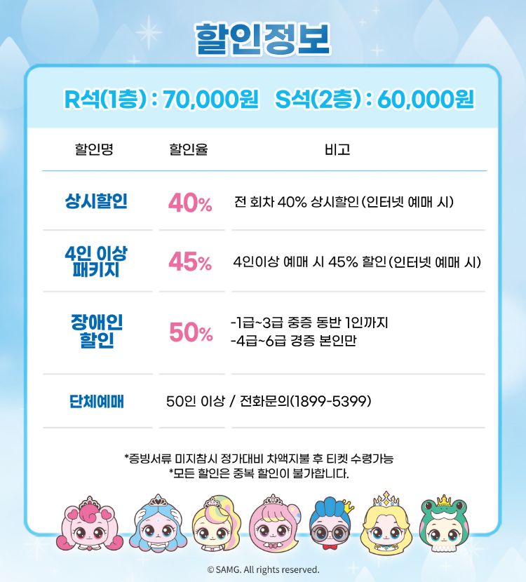 - 특정 기간, 특정 공연일에만 판매하는 가격이 있으니 예매 전 [가격 전체 보기]를 눌러 확인해 주세요.