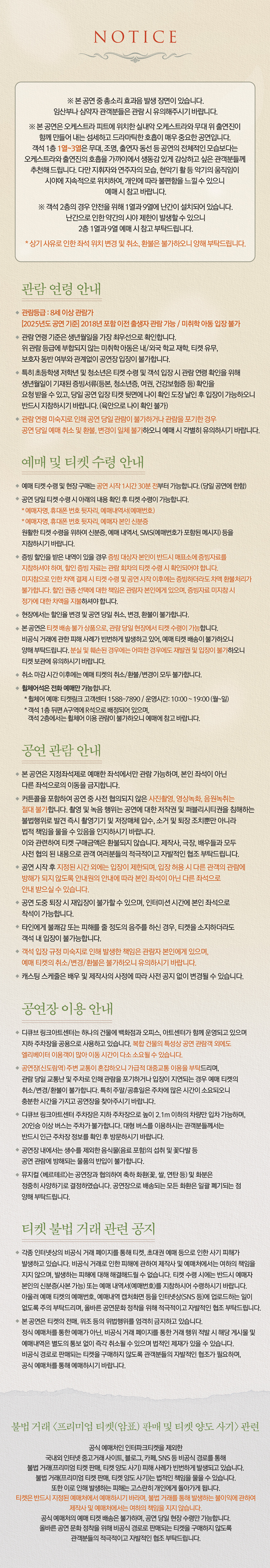 - 관람일 2일전 ~ 취소기한까지: 티켓금액의 30%