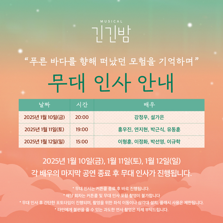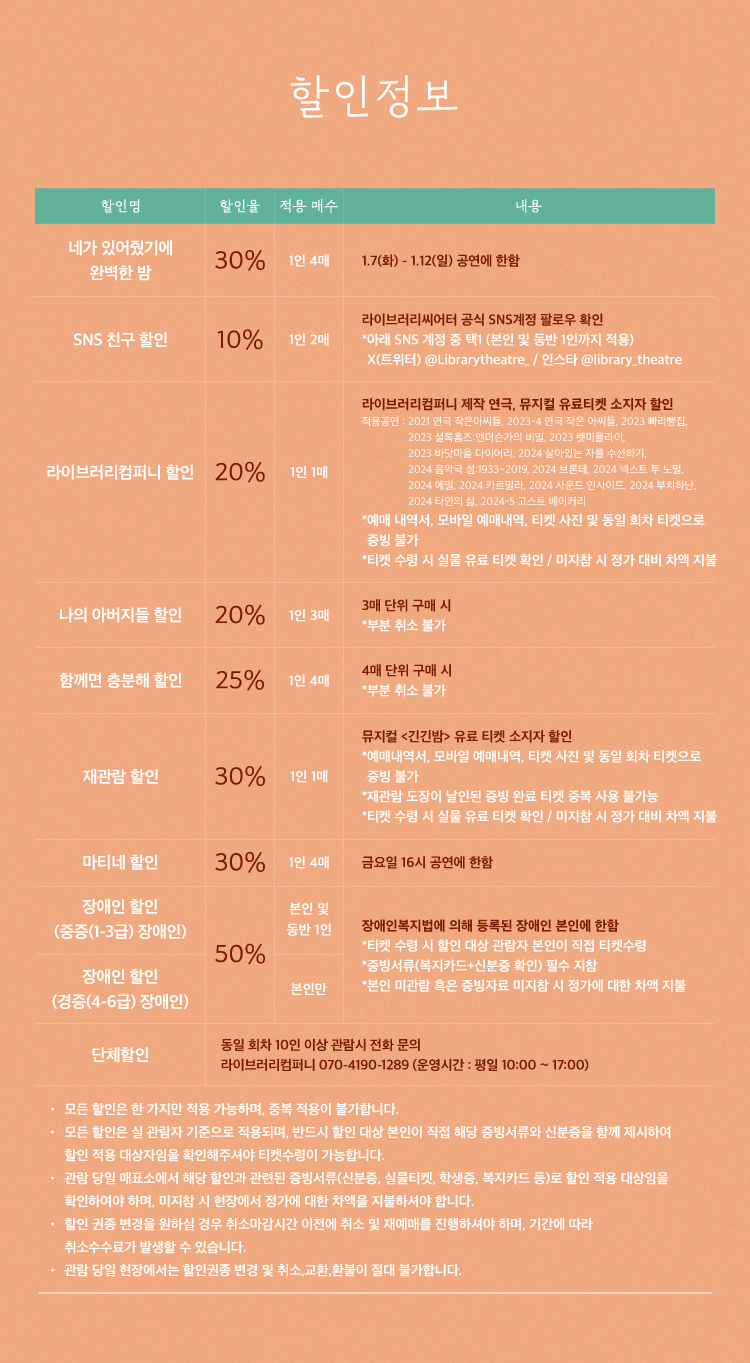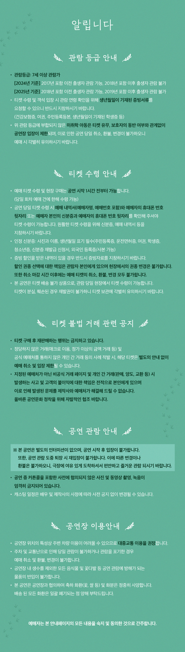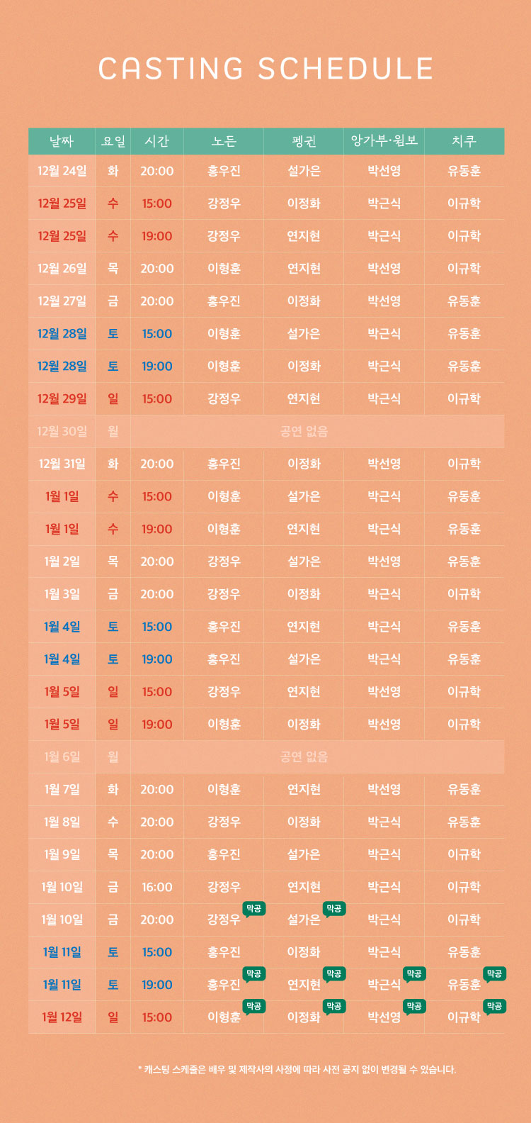 * 12/27(금) 16시 공연없음, 1/3(금) 16시 공연없음, 1/5(일) 15시, 19시 공연