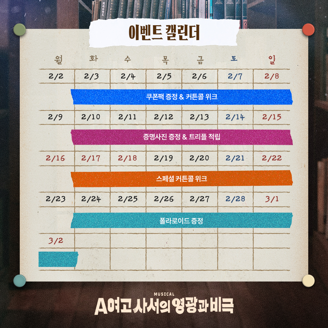 화 수 목 금 20시 | 토 15시, 19시 | 일 공휴일 14시, 18시