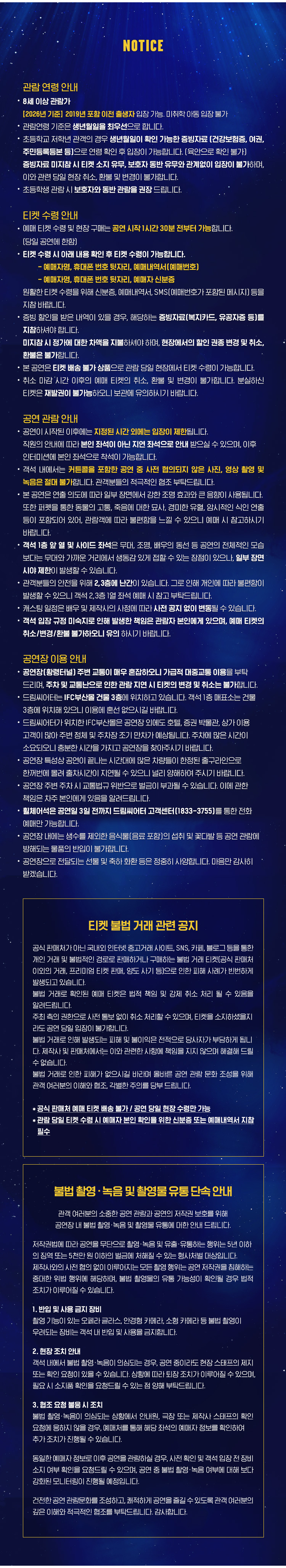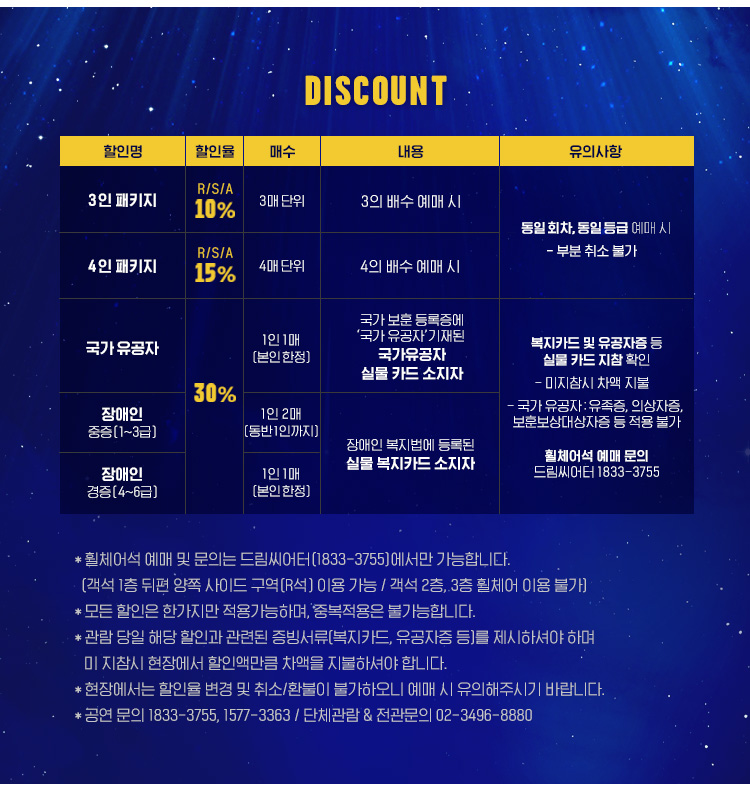 - 관람일 2일전 ~ 취소기한까지: 티켓금액의 30%