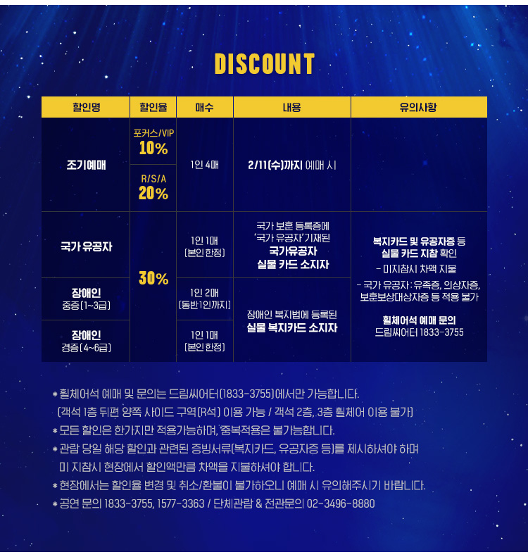 - 특정 기간, 특정 공연일에만 판매하는 가격이 있으니 예매 전 [가격 전체 보기]를 눌러 확인해 주세요.