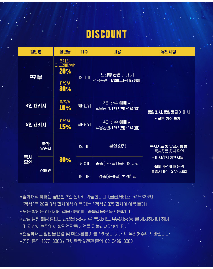 - 특정 기간, 특정 공연일에만 판매하는 가격이 있으니 예매 전 [가격 전체 보기]를 눌러 확인해 주세요.