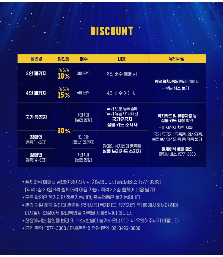 - 관람일 2일전 ~ 취소기한까지: 티켓금액의 30%