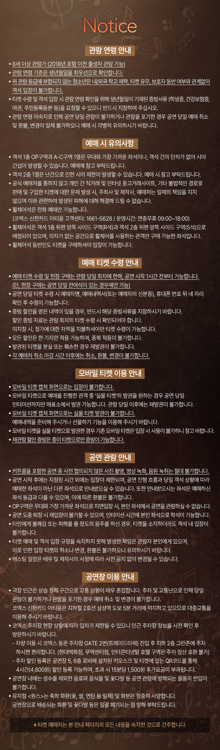 - 예매 후 7일 이내 취소시 티켓 금액 전액이 환불됩니다.(예매 수수료 제외)