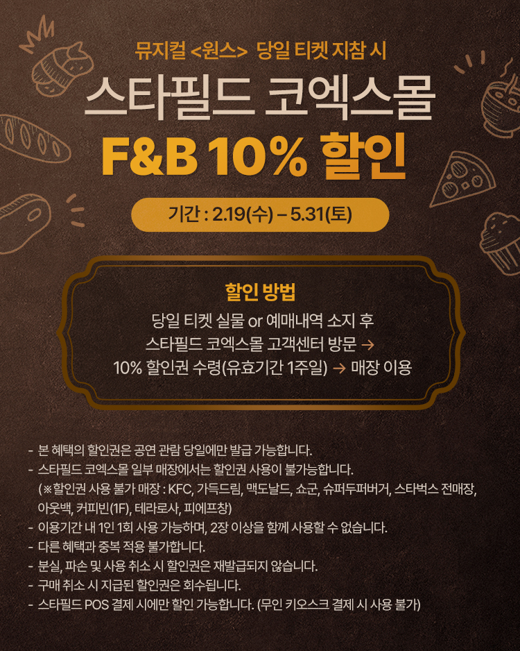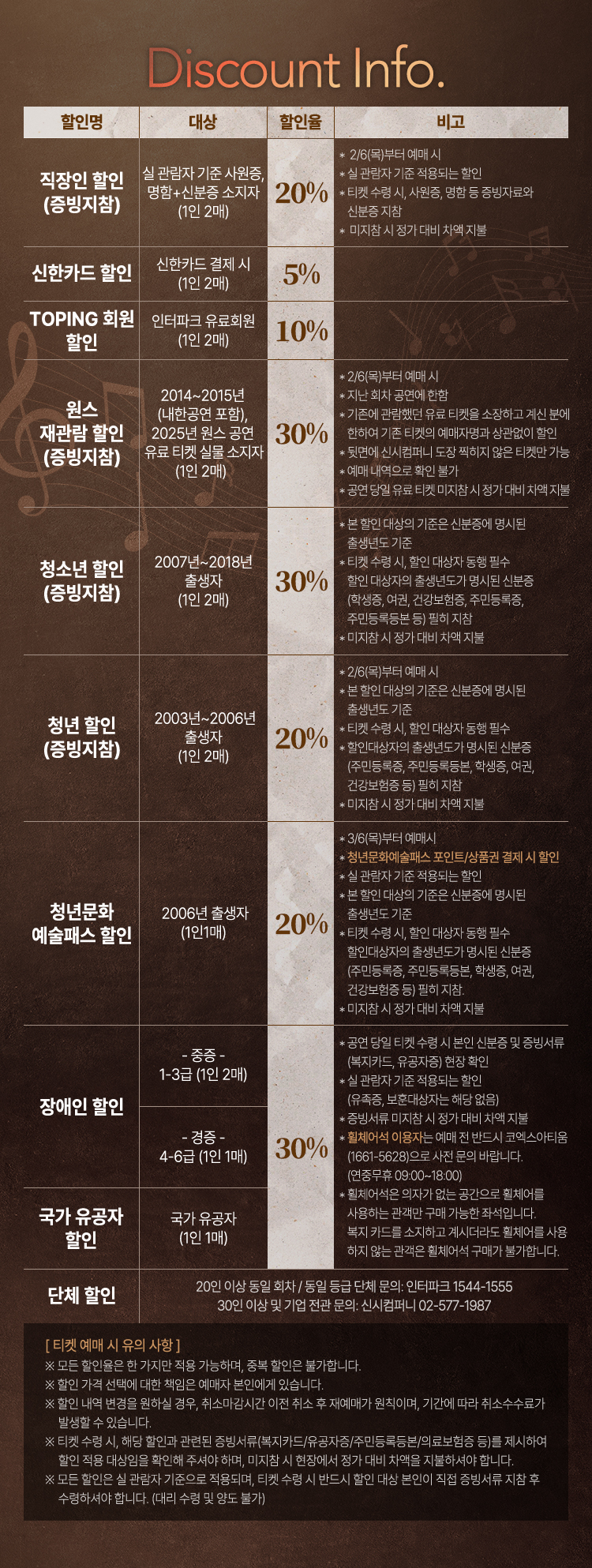 - 관람일 2일전 ~ 취소기한까지: 티켓금액의 30%