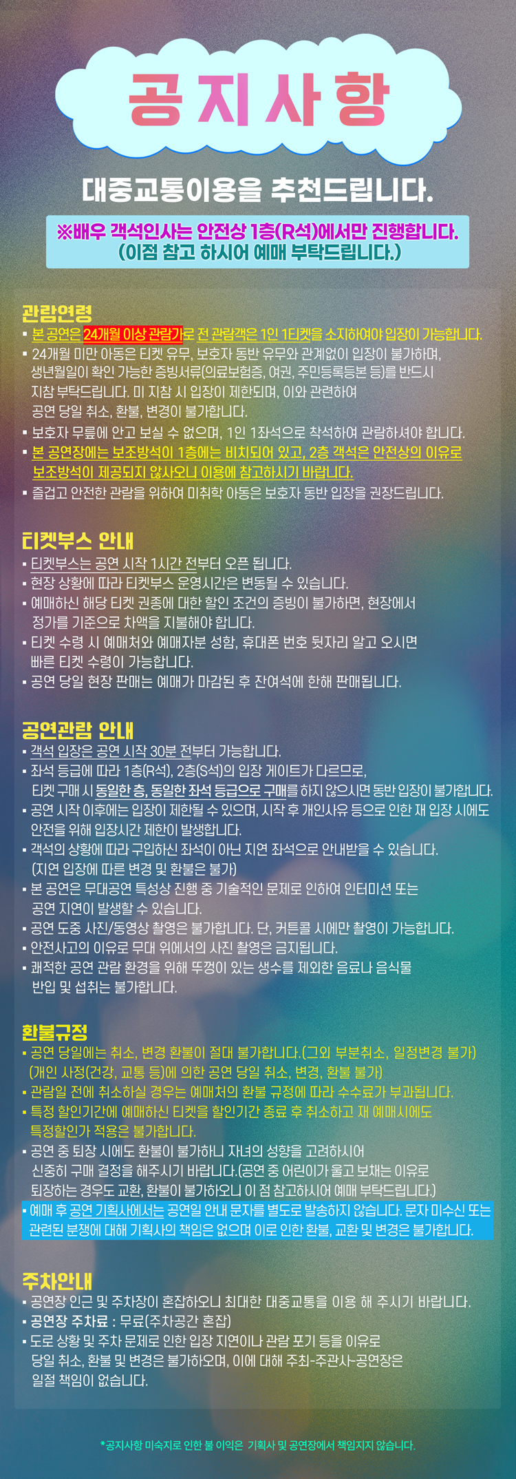 예매가능시간: 전회차 공연관람 전 목요일 오후 5시까지