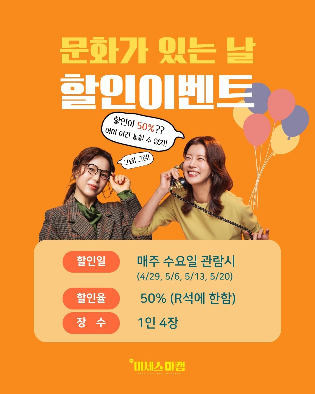 월~토요일 관람시: 전일 17시까지 / 일요일 관람시: 전일 11시까지
