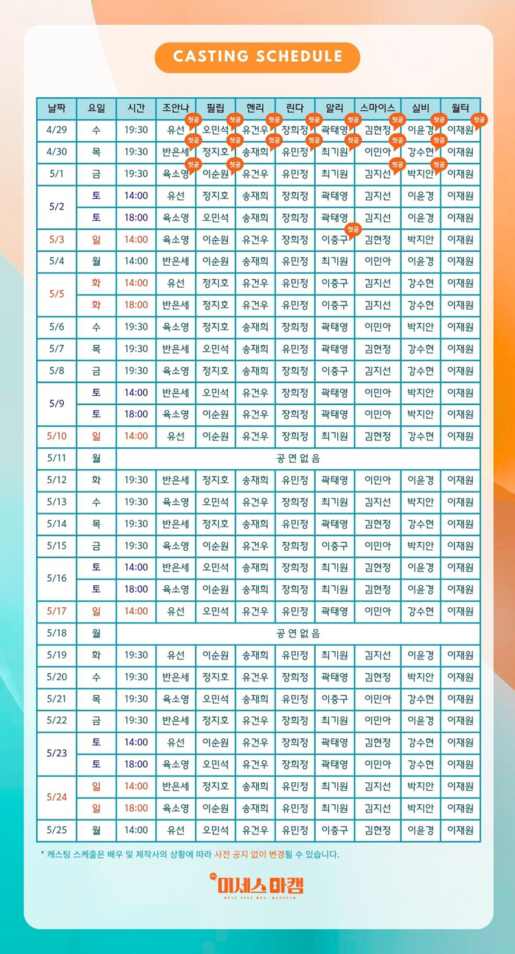 * 5월 4일(월) 14시 공연 / 5월 24일(일) 18시 추가