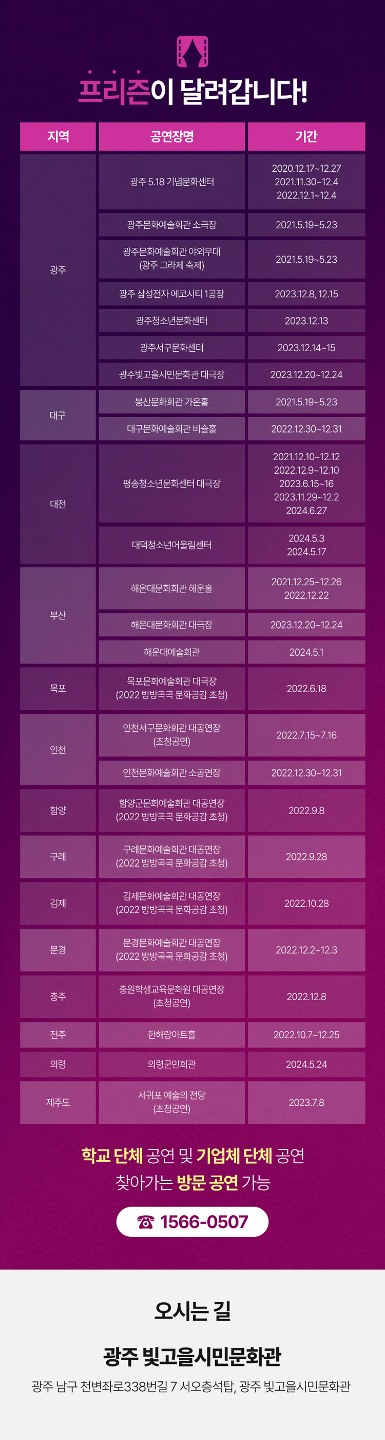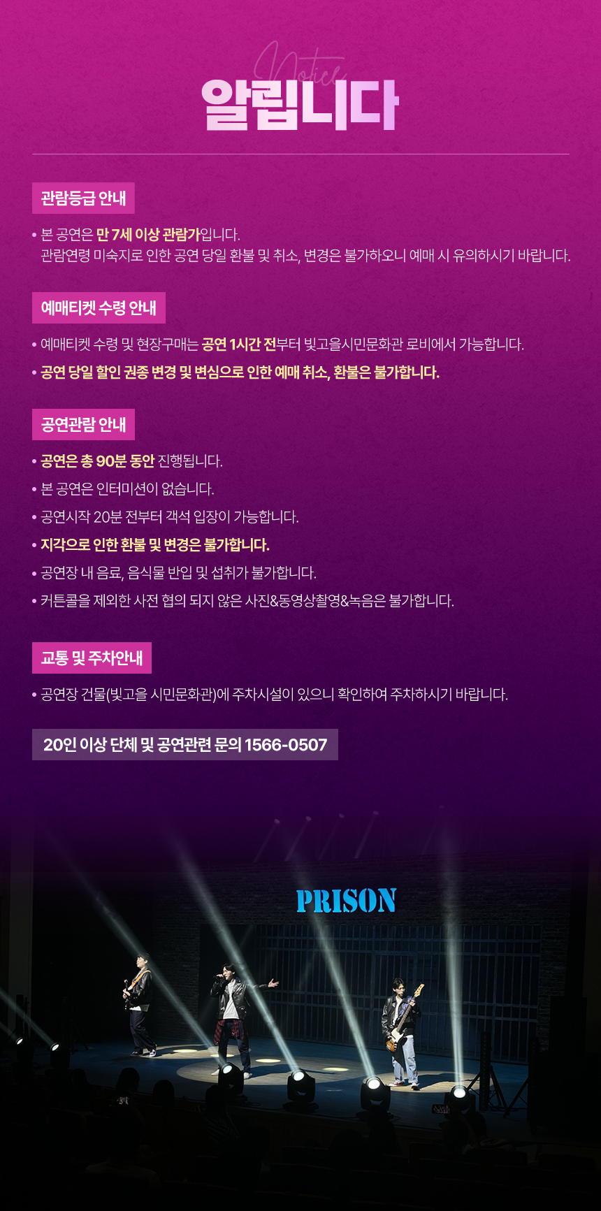 - 관람일 2일전 ~ 취소기한까지: 티켓금액의 30%