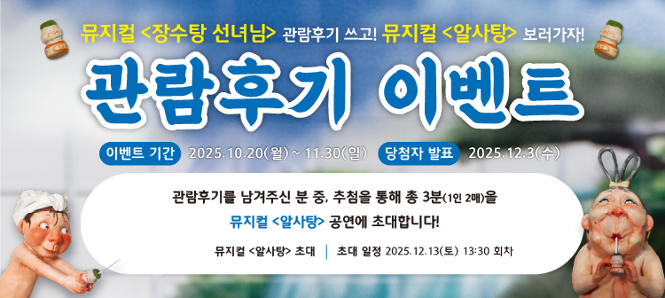 * 12.20(토) 14:00 회차는 전관으로 판매 마감되었습니다. 예매 시 참고 부탁드립니다.