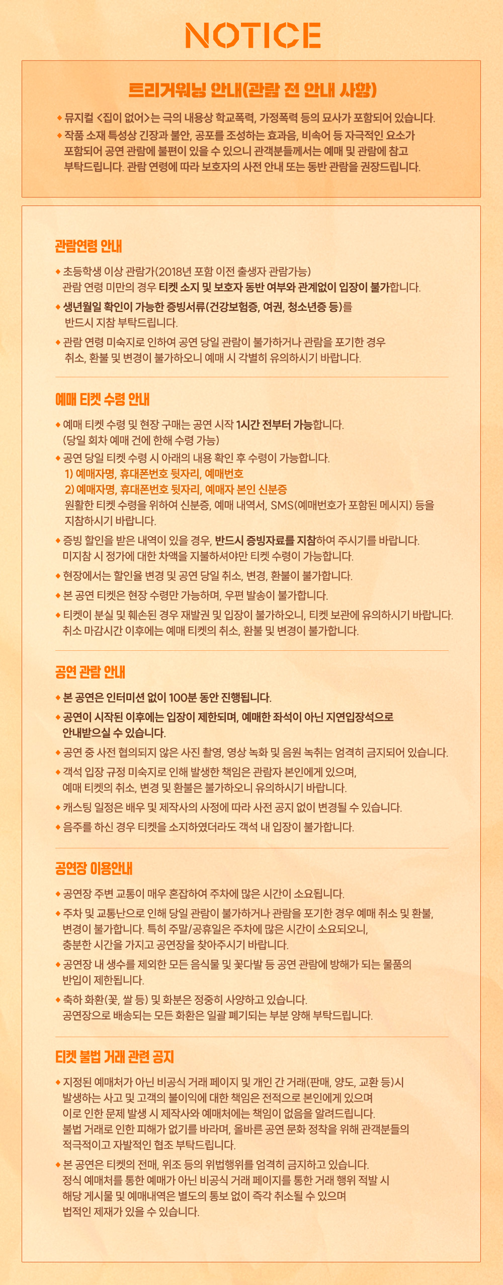 - 관람일 2일전 ~ 취소기한까지: 티켓금액의 30%