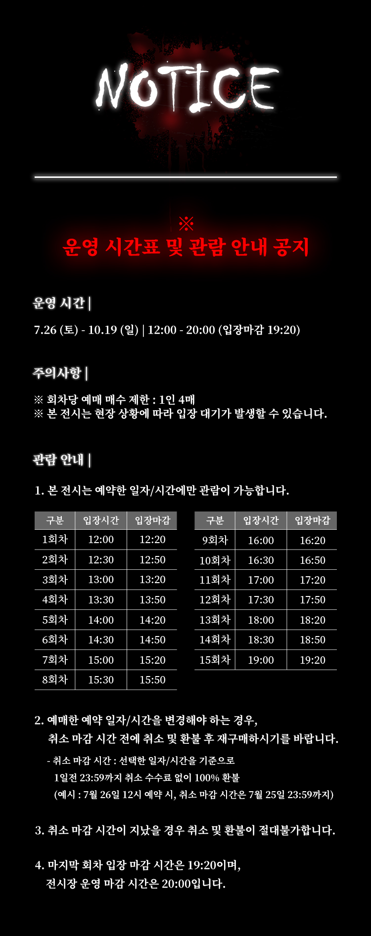- 관람일 2일전 ~ 취소기한까지: 티켓금액의 0%