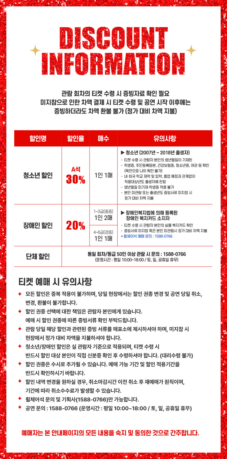 - 특정 기간, 특정 공연일에만 판매하는 가격이 있으니 예매 전 [가격 전체 보기]를 눌러 확인해 주세요.