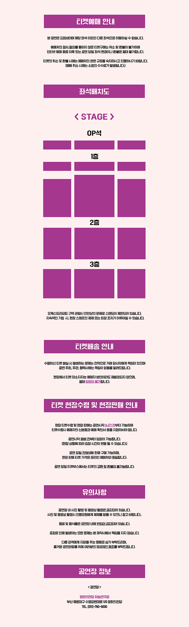 - 관람일 2일전 ~ 취소기한까지: 티켓금액의 30%