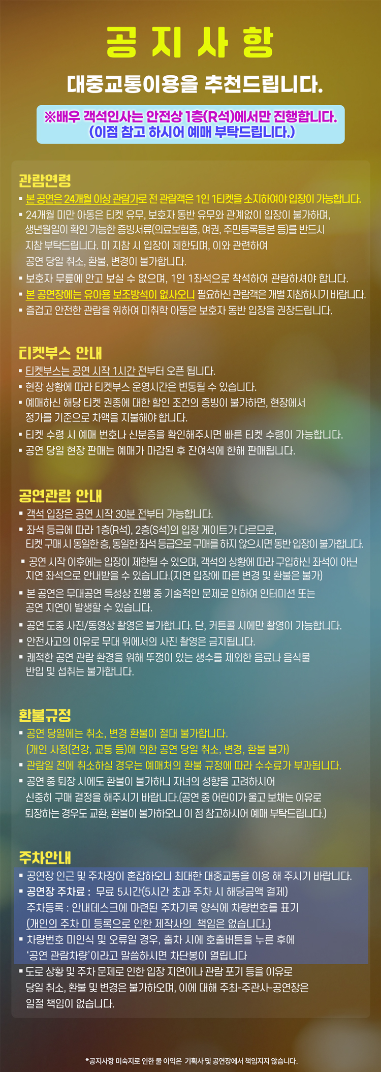 예매가능시간: 전회차 공연관람 전 목요일 오후 5시까지