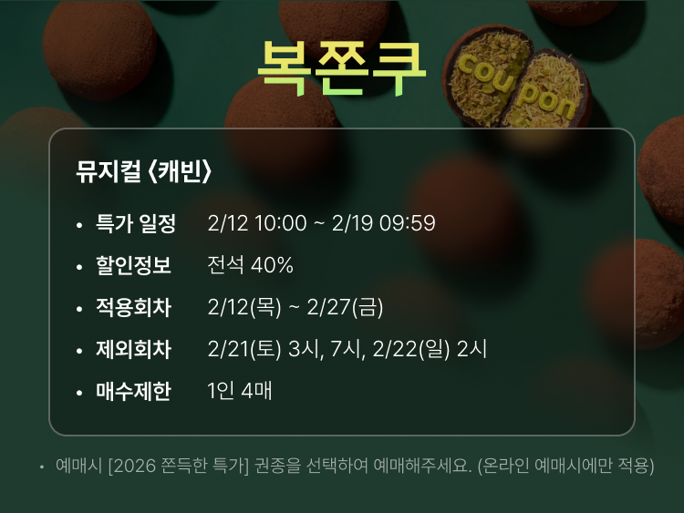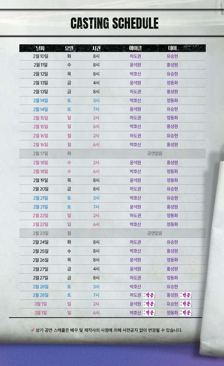 *단, 2/17(화) 공연 없음, 2/20(금) 8시 1회 공연