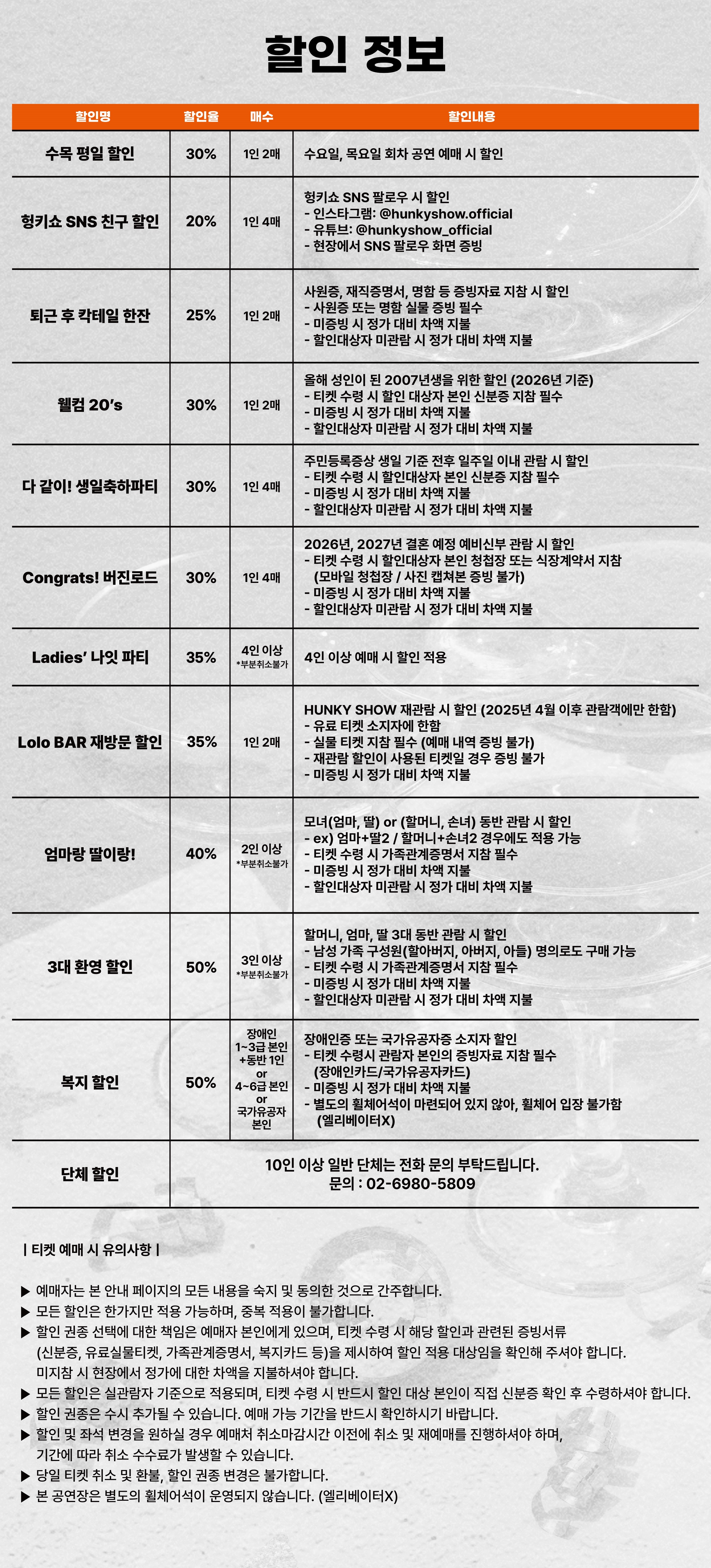 - 관람일 2일전 ~ 취소기한까지: 티켓금액의 30%