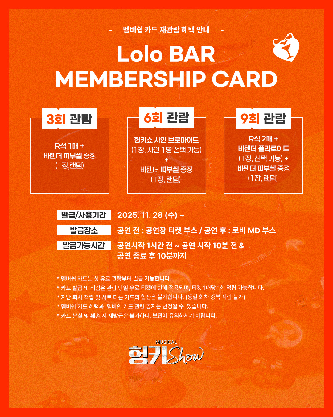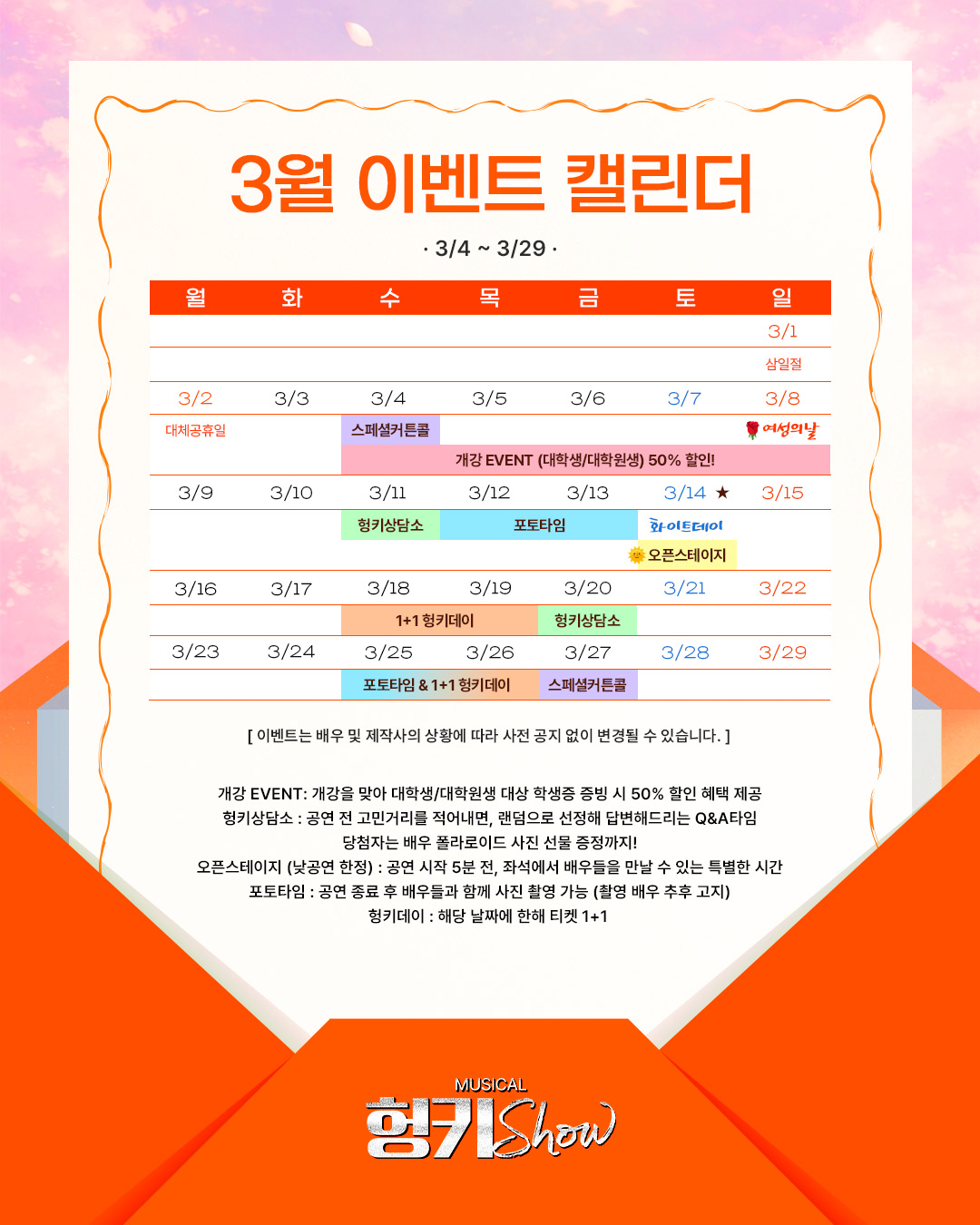 수,목,금 20시 / 토,공휴일 15시, 19시 / 일 15시 (월,화 공연없음)