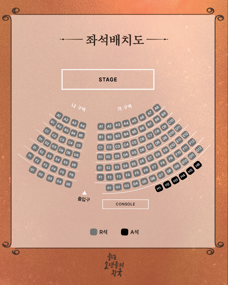 토 2시, 6시 | 일, 월, 화 2시 | 수, 금 8시 | 목 공연 없음