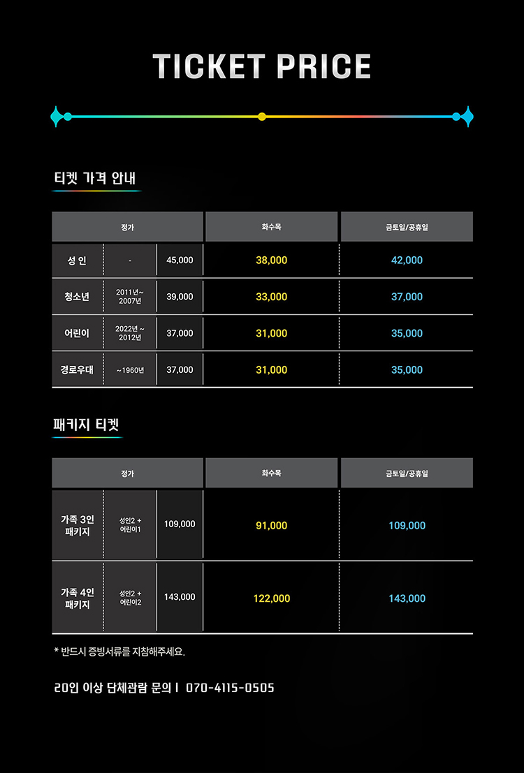 - 예매 후 7일 이내 취소시 티켓 금액 전액이 환불됩니다.(예매 수수료 제외)
