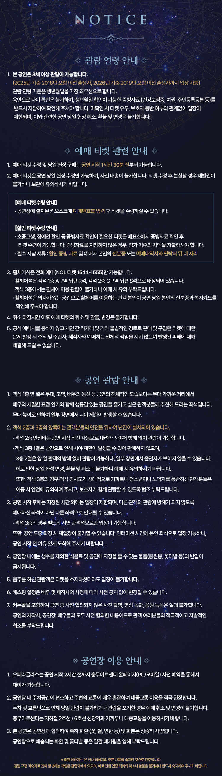 * 공연장, 제작사 및 관계사 협의에 따라 일부 좌석이 마감되었습니다.